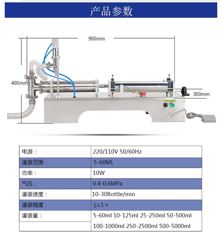 6.灌装量和灌装速度方便可调
