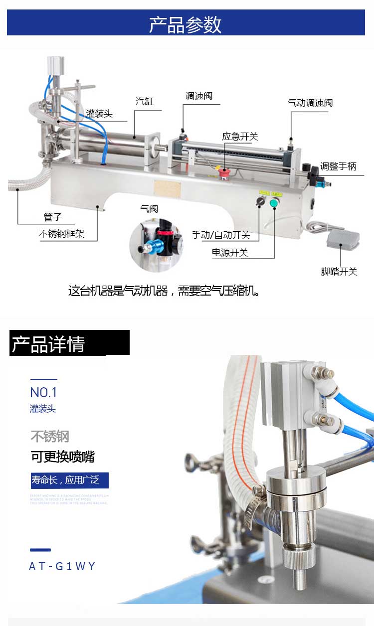 7.粘稠液体灌装机可进行自动灌装和脚踏开关控制灌装两种工作方式的转换根据粘液或膏体流动性可随时调节灌装压力