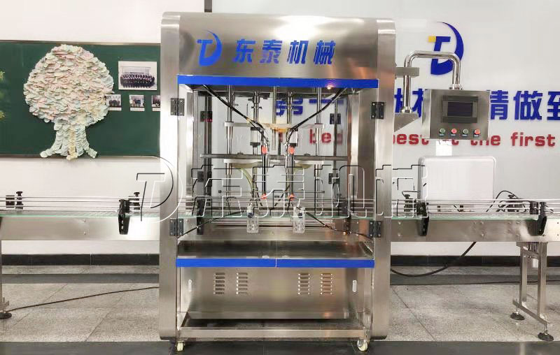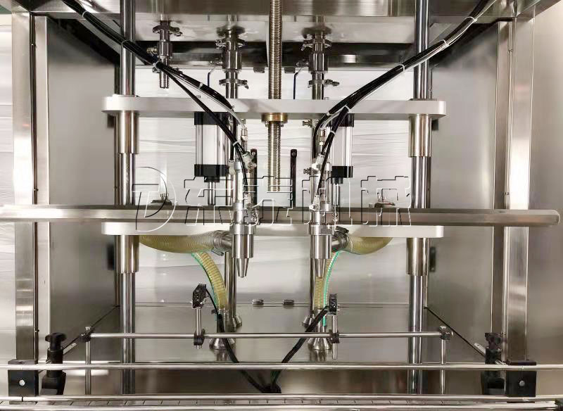 该DT-sm2型号全自动双头食用油灌装机设计合理,机型小巧,操作方便,气缸的活塞和缸体均由不锈钢材料制成,采用薄形汽缸,控制灌装阀开闭,阀芯采用优质不锈钢制造,可适用于多种腐蚀性液体的灌装,灌装闷头采用防滴漏,防拉丝设计,可调式升降灌装装置,汽缸轴与灌装液体隔离,大大延长了汽缸的使用寿命。灌装量和灌装速度均可任意调节,灌装精度高。可灌装的 液体(食用油、润滑油、洗洁精、机油等等)