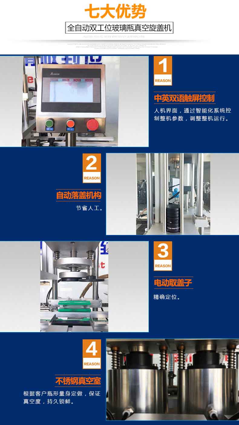 2.本机采用全密封真空式结构,旋合式旋盖原理,真空虚可按需设定。