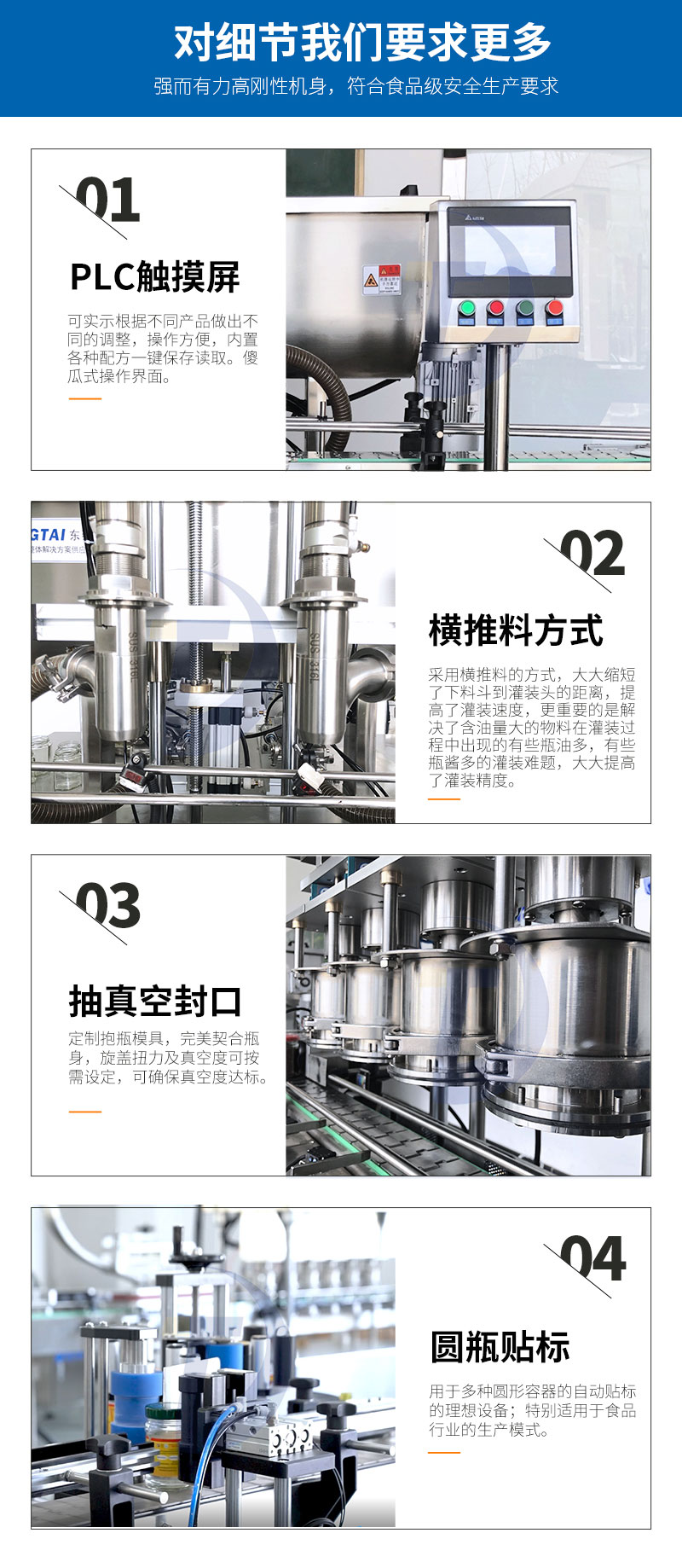 山东东泰机械制造有限公司是小包装油类包装线、软包装油类灌装机、溶液灌装机、填充机及后段包装设备、工业机器人等产品专业生产加工的公司,拥有完整、科学的质量管理体系。 山东东泰机械制造有限公司的诚信、实力和产品质量获得业界的认可。 欢迎各界朋友莅临参观、指导和业务洽谈。