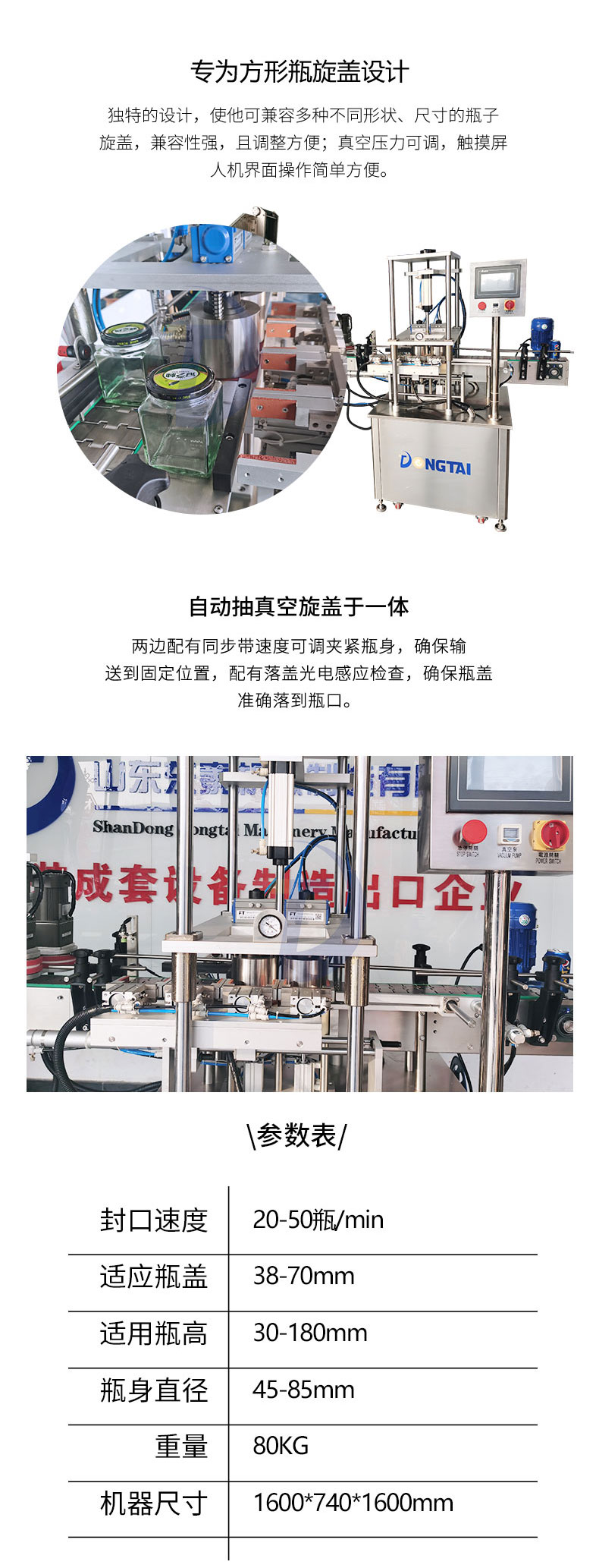 山东东泰机械制造有限公司是小包装油类包装线、软包装油类灌装机、溶液灌装机、填充机及后段包装设备、工业机器人等产品专业生产加工的公司,拥有完整、科学的质量管理体系。 山东东泰机械制造有限公司的诚信、实力和产品质量获得业界的认可。 欢迎各界朋友莅临参观、指导和业务洽谈。