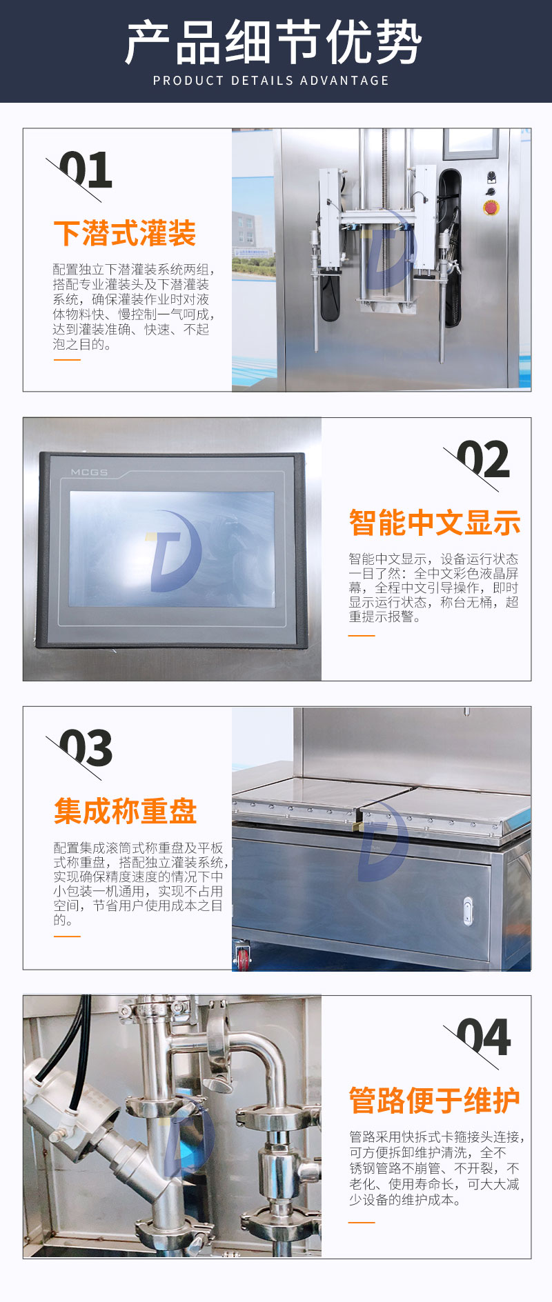 山东东泰机械制造有限公司是小包装油类包装线、软包装油类灌装机、溶液灌装机、填充机及后段包装设备、工业机器人等产品专业生产加工的公司,拥有完整、科学的质量管理体系。 山东东泰机械制造有限公司的诚信、实力和产品质量获得业界的认可。 欢迎各界朋友莅临参观、指导和业务洽谈。