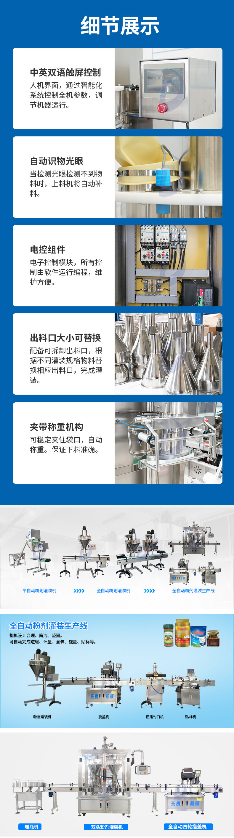 山东东泰机械制造有限公司是小包装油类包装线、软包装油类灌装机、溶液灌装机、填充机及后段包装设备、工业机器人等产品专业生产加工的公司,拥有完整、科学的质量管理体系。 山东东泰机械制造有限公司的诚信、实力和产品质量获得业界的认可。 欢迎各界朋友莅临参观、指导和业务洽谈。