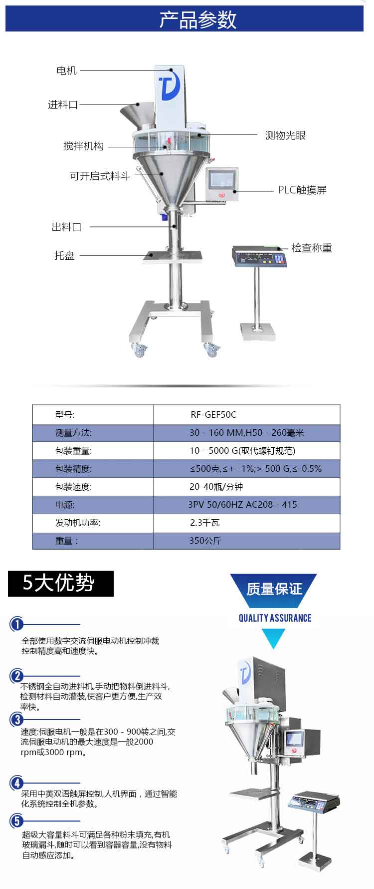 6、适合袋类、罐类、瓶类等各种包装容器粉剂定量包装