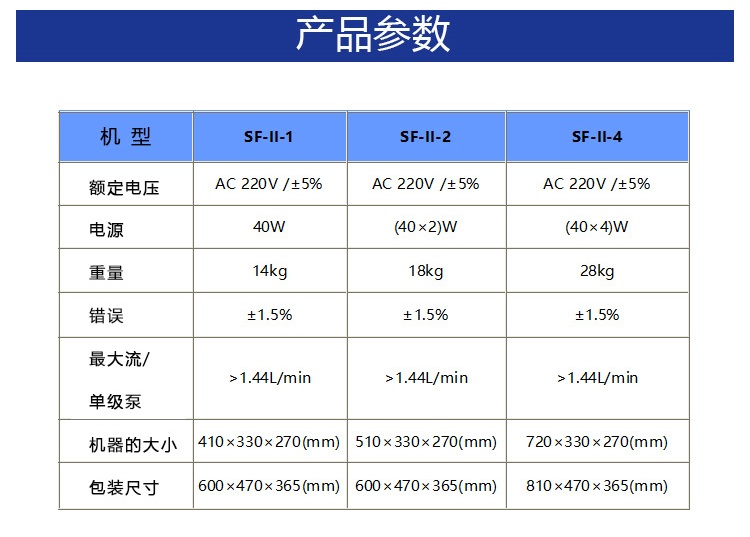 8.灌充量SF-II从1ml至10000ml可调;SF-I从10ml-80000ml可调,调节方便。