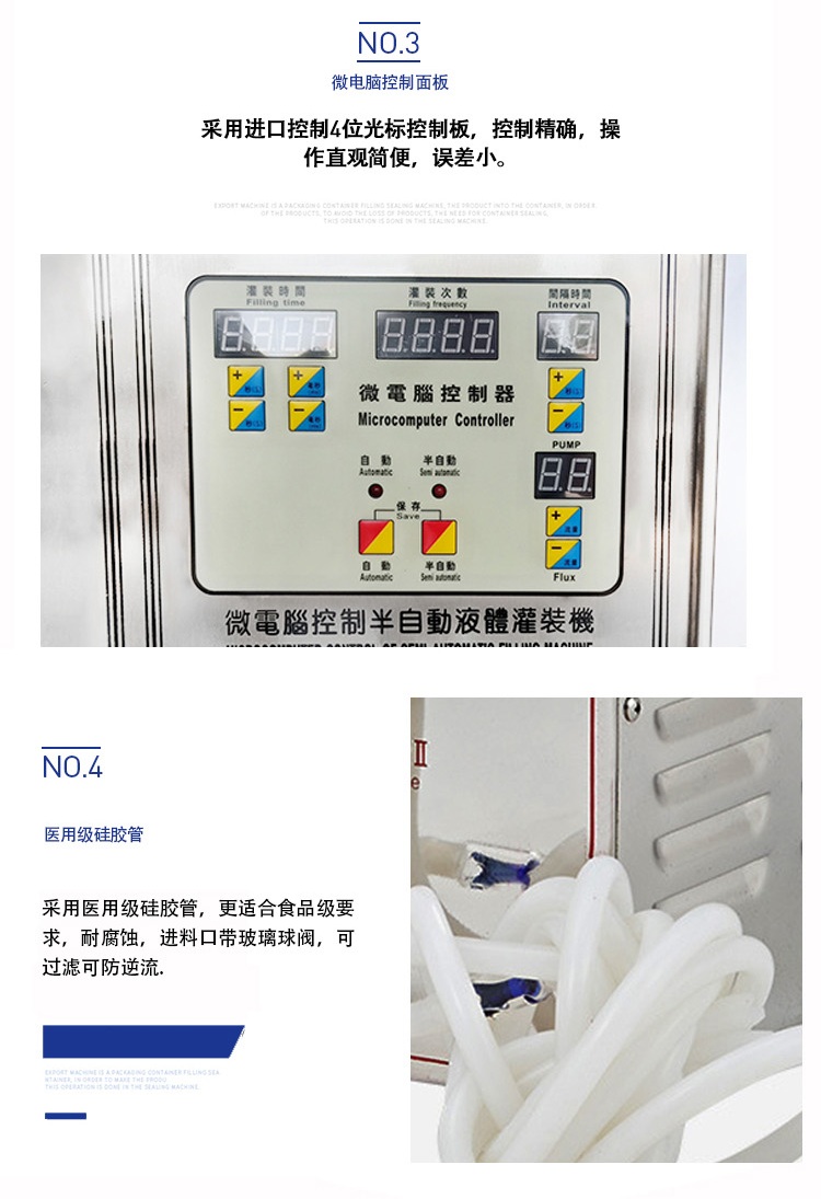 7.可配多个灌装头,常用的型号有:单泵机、双泵机和四泵机;
