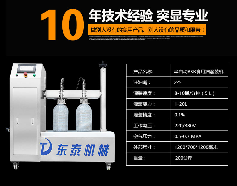和灌装量,可使用各种大小形状的容器的灌装。自动化程度高。另外,半自动双头食用油灌装机
