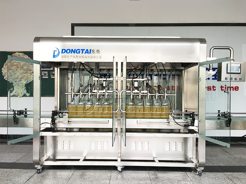 每一次结束食用油的灌装工作后使用洗涤剂彻底对机器设备进行清洗 ,倘若更换不同油品灌装,应清洁完机器设备后重新根据食用油的密度属性进行定量 ,避免因不同食用油的密度差异从而造成灌装量的误差 。